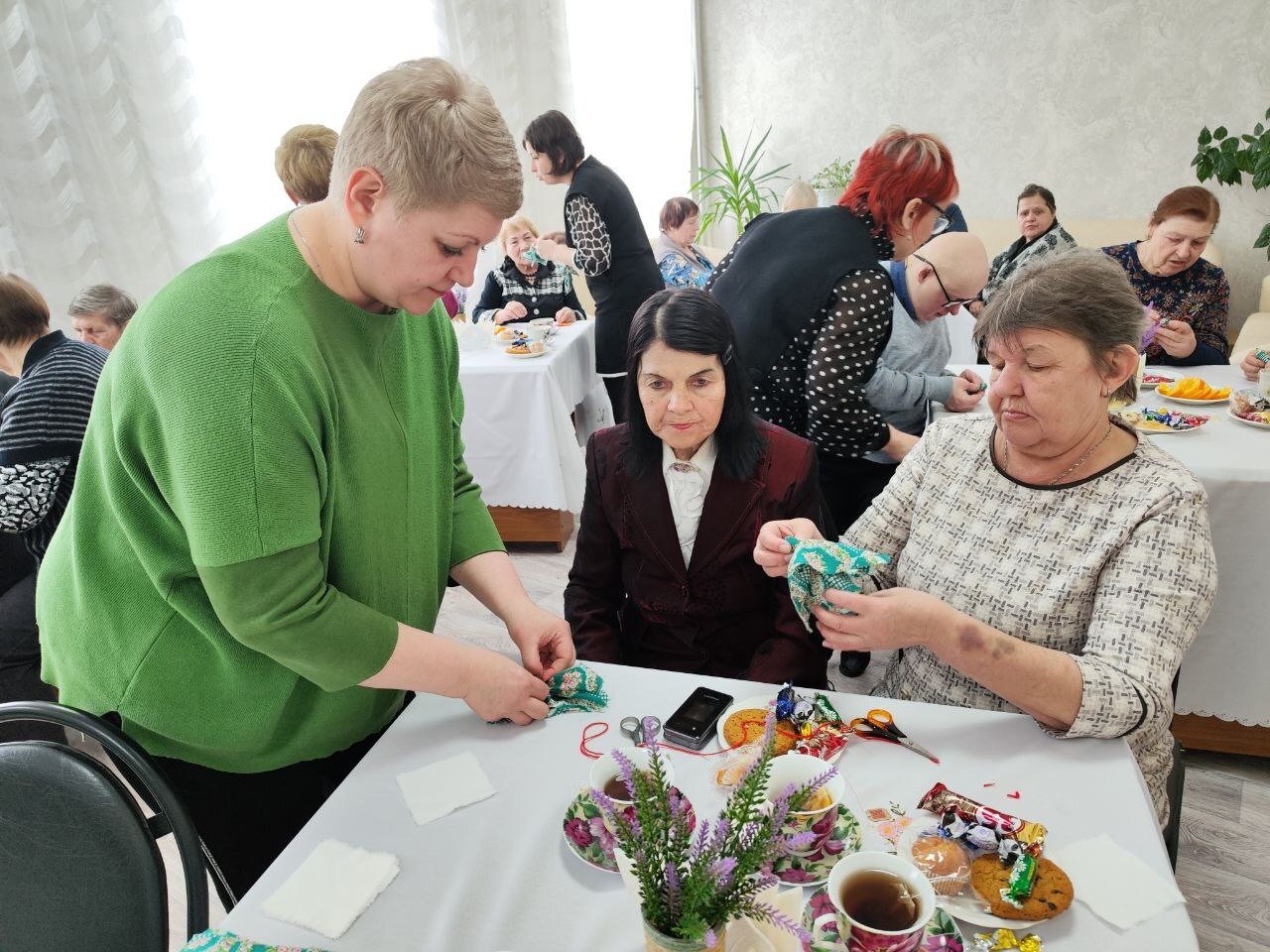 Мероприятие открыла заместитель директора Центра, Татьяна Николаевна Мостафина. Она тепло поприветствовала всех присутствующих и выразила искреннюю благодарность матерям и жёнам, чьи сыновья и мужья служили в "горячих точках" и сейчас с честью несут воинский долг. Атмосфера была по-настоящему домашней: за столами, украшенными чаем, сладостями и фруктами, гости могли непринужденно общаться.